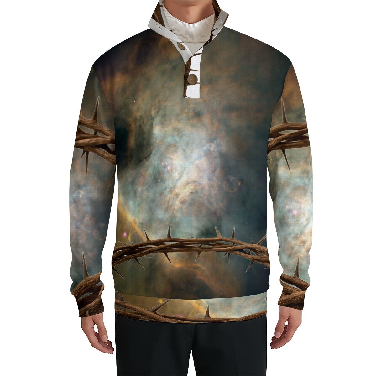 This Christ-centered crown of thorns pullover sweater from Loved Above blends faith and fashion, perfect for men who want to express their beliefs while staying stylish and comfortable in casual or semi-formal settings. Ideal for daily wear, church events, office outings, or seasonal travel during fall, winter, and spring.