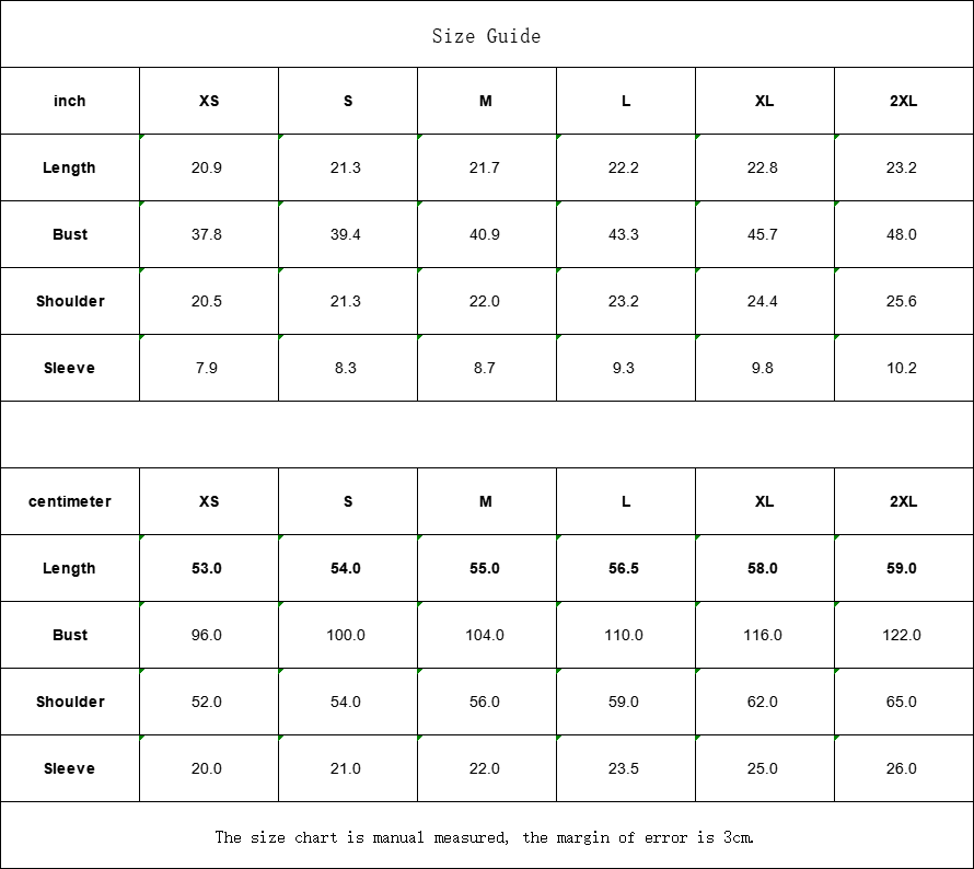 inch XS S M L XL 2XL